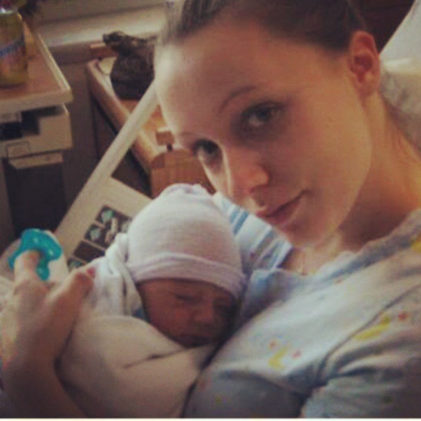 sleep. A few hours later at about 3 am, I had dilated to 10cm and it was time to push, I couldn’t feel ANY of the contractions, so I couldn’t push WITH them. I had to have the nurses look at the screen and tell me when to push. Being that I couldn’t feel anything, I only got him down so far and his heart rate started dropping. It was the scariest few minutes of my life..They had to use forceps to pull him out (crazy I know) but luckily everything went OK. I gave birth to my beautiful baby boy Jayden – 7lbs 11oz and 19″ long on 3/25/2008!