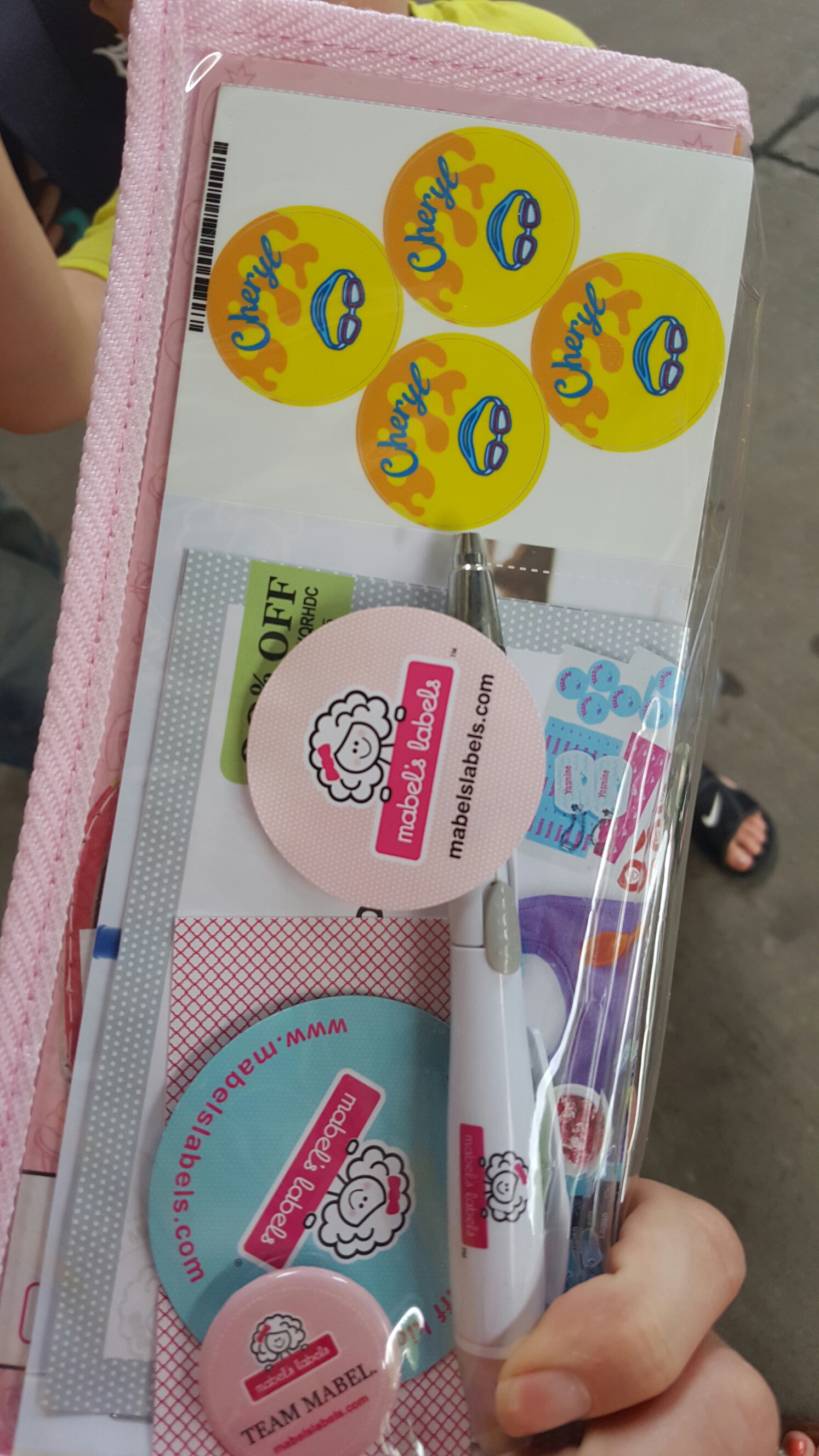 Mabel’s Labels had a table set up in the lounge and so graciously provided us mommas with a custom Mabel’s Labels set. If you haven’t heard about Mabel’s Labels yet, they provide custom labels for all of the stuff kids loose! They are all washer safe, UV safe, and come in various styles. Think of all of the items you can label to ensure they come back with your little ones. These are perfect for daycare or camps, but can even be useful for daily outings and finding shoes at a play place.