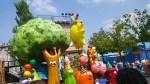 Lastly, the parade! You’ll want to set up a bit before the parade to get a close up seat. Usually people will start laying own their towels or planting their strollers along the main street an hour before, The parade is adorable with all of the characters coming up to greet the children, a screen showing the crowd, and even sometimes pulling children into the parade to complete a dance number or sing along. The theme this year is Birthday Party since it’s Sesame Place’s 35th Birthday Anniversary. They even replaced the character shrubs at the entrance with a huge birthday cake.