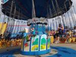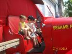 Most of the rides in this area children over 42″ can ride alone, but I still went on whatever I could with them. My 3 year old was obsessed with the flying Elmo Fish since he loves planes. He made me go on it over and over!My 7 year old and 7 year old nephew went on the large swing and loved them. They went on it twice actually. That was the great thing about going on a weekday, there were no lines!!!