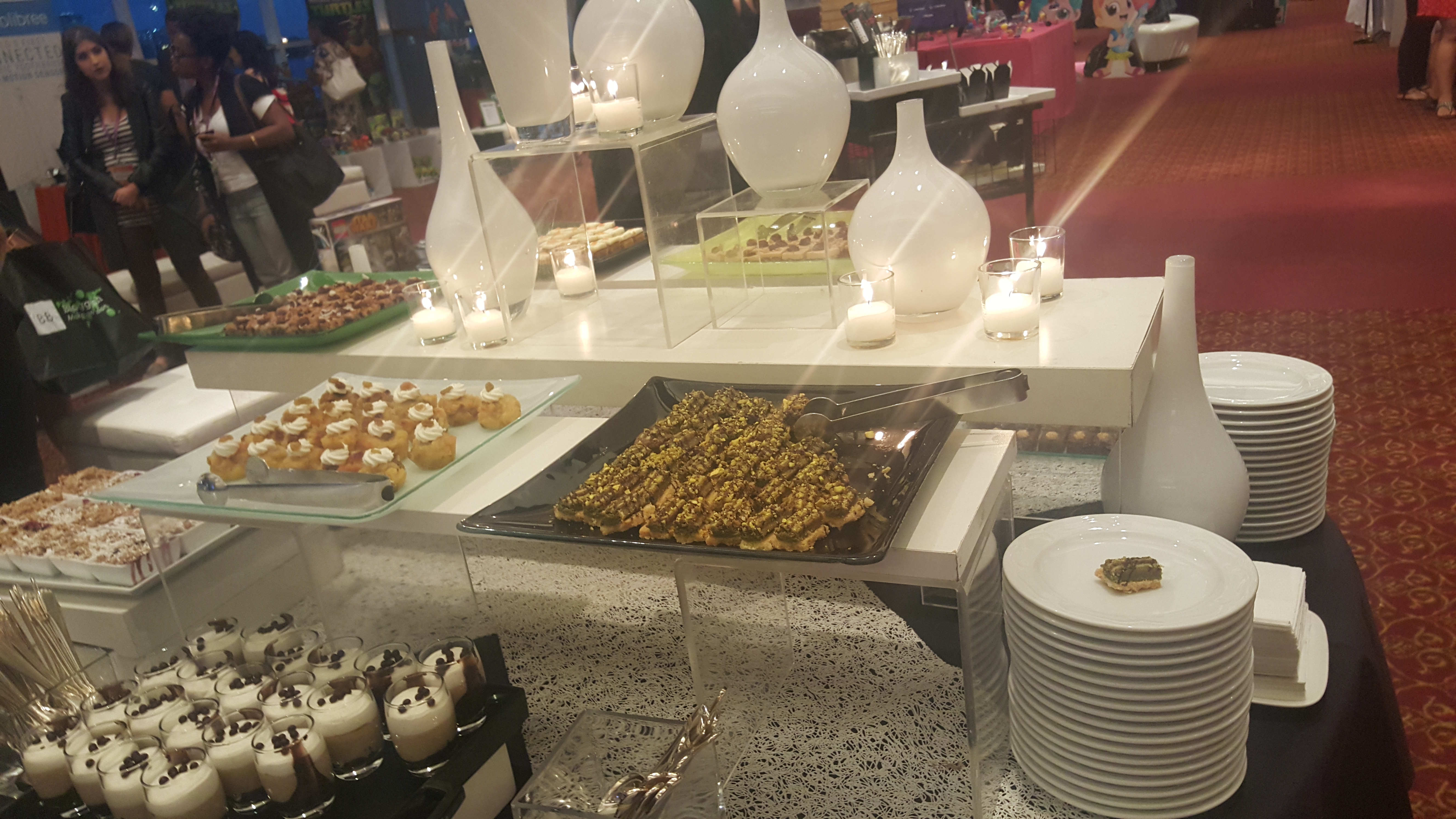 There was so much going on and so little time since I had gotten there on Day 1 at 8:30 pm into Sweet Suite. I immediately went for a quick glass of wine, and some food to munch on since I had just rushed from work in NJ, through rush hour(s) – into NYC via very transportation method available. Are you kidding me with the attention to detail that was put into decoration this place? There were tables set up with chef’s preparing your small food selections, and small desert tables with adorable candy center pieces. I mingled at the vendor tables, and quickly met some blogger friends I hadn’t met before. I wanted to interact with as many brands as I could an make sure to hand out my card. There were many brands I was well aware of, and some that I was not. The best part is how enthusiastic each an every PR rep was about their product and how proud they were to show it to me. I loved every moment of it, sharing their joy and hoping to be a part of something bigger in the near future. That 45 minutes I had there was amazing. But it was only a taste of what was to come in the upcoming day!