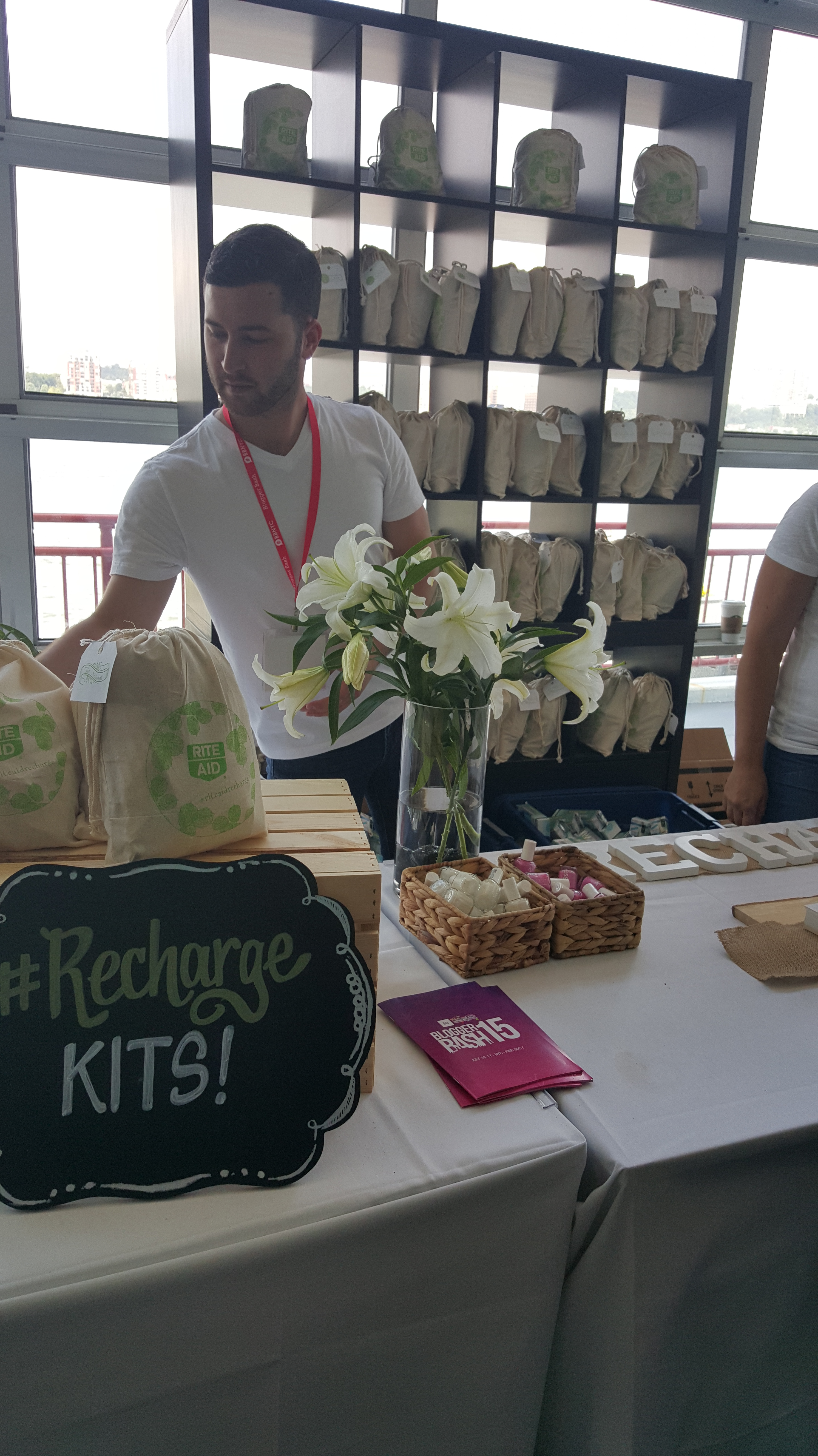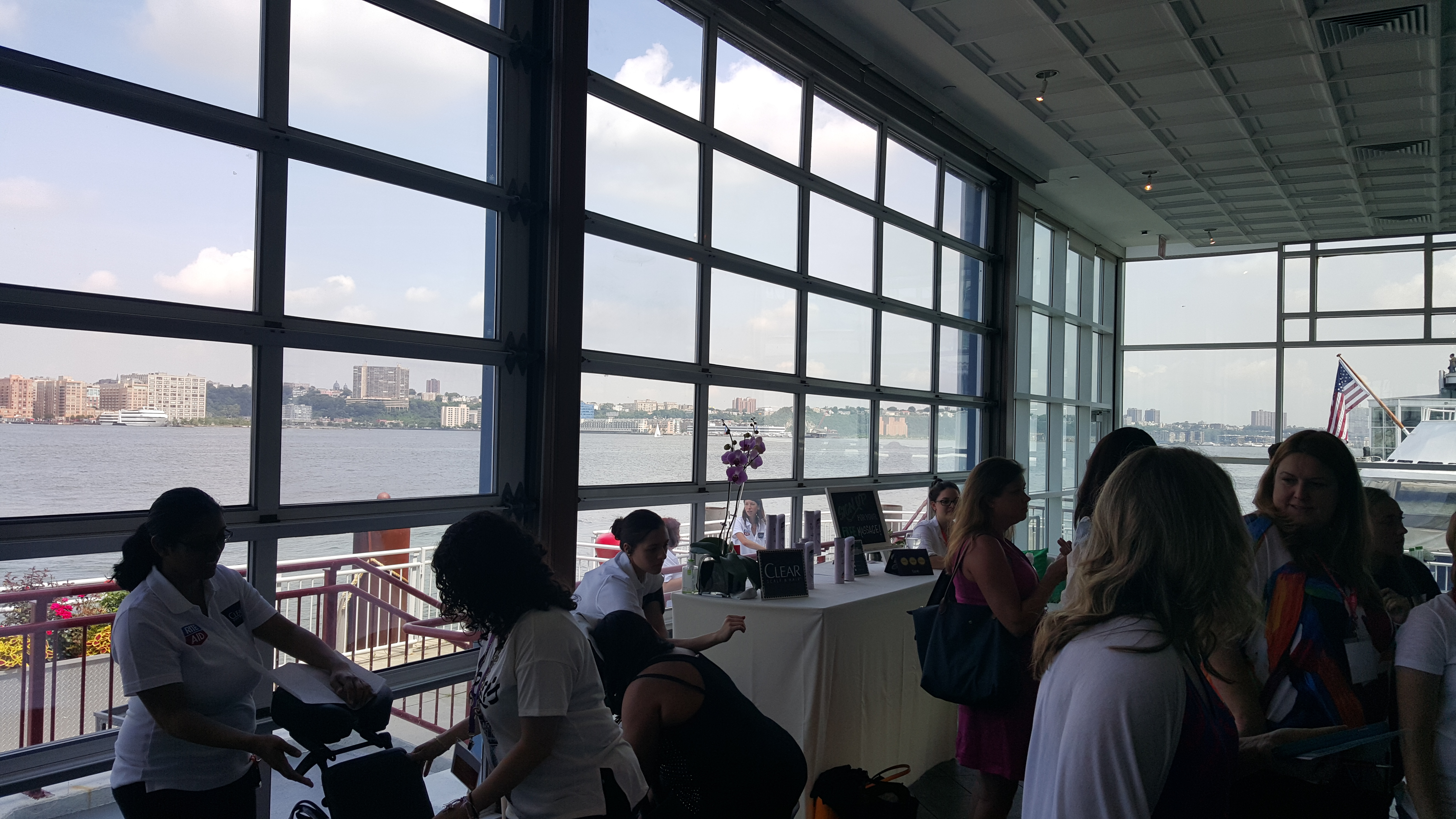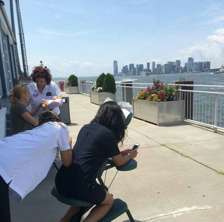 Next up, we walked back over to Pier 60 to the Rite Aid Recharge station that would run 10am-6pm. I cannot express what an AMAZING job they did converting the room into a relaxing space to meet with more PR reps that probably would’ve been out of my reach if it weren’t for BB. The amenities there were something you’l find at a 5 star hotel in NYC. Cucumber water, refreshing lemon lime water, chocolate bar… wait for it…. MASSAGES on the pier in front of the water with a view of the city – FREE. Yes, this was possibly the best part of my entire trip.