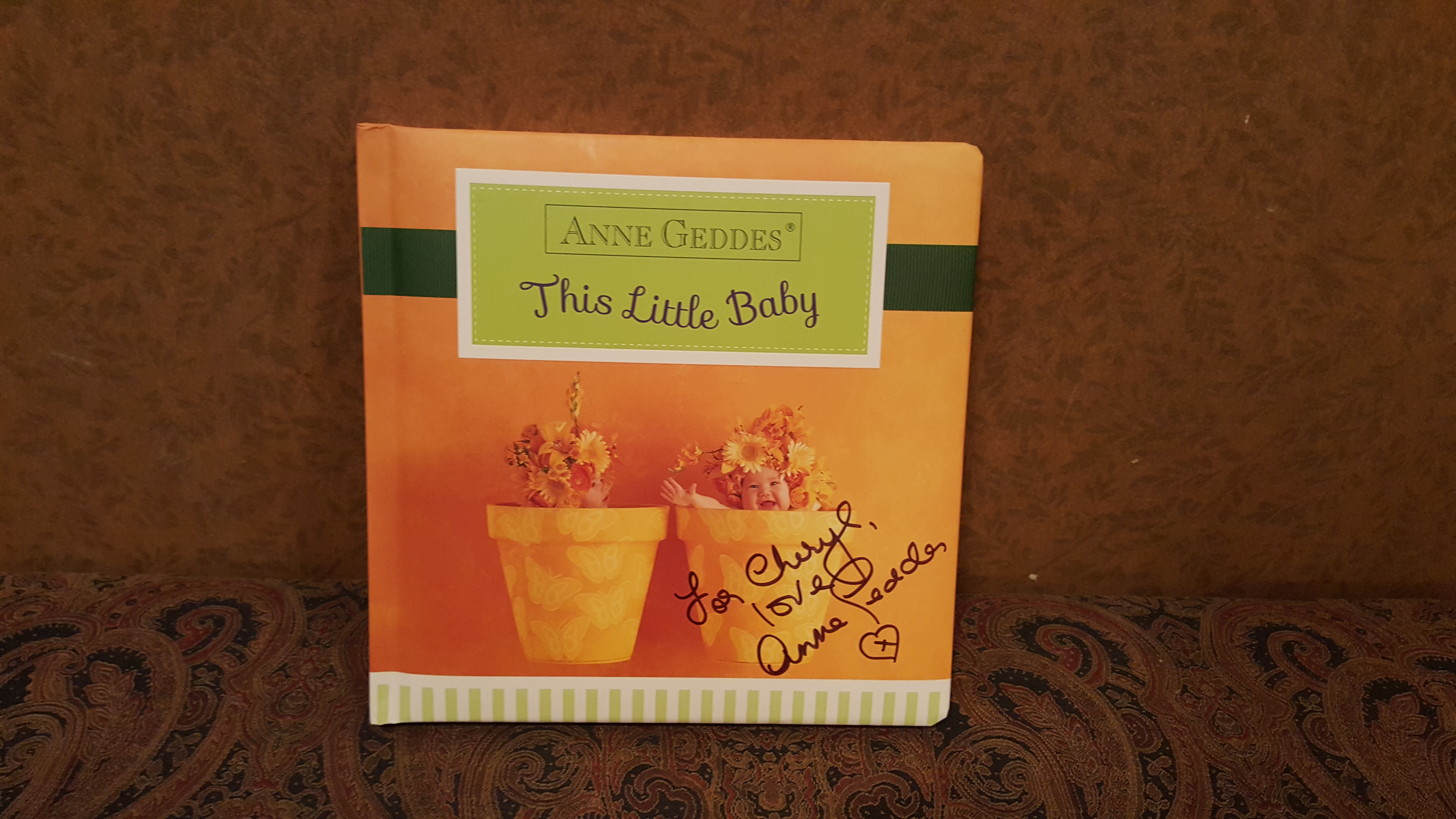 My youngest is now 3, but I still wanted to get in on the action in the Baby Pallooza room and I am beyond glad that I did. Anne Geddes did a Q & A, and you guessed it, I had front row seats! She spoke so honestly about her meningitis campaign and how it touched her heart personally. She also did a book signing and I got my personalized copy! This book is just so cute you have to check it out!