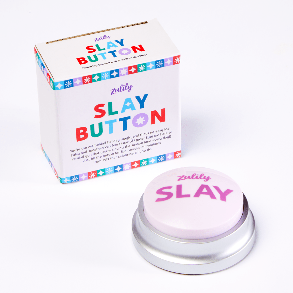 “I’m ecstatic to partner with Zulily to bring the Slay Button to life and help moms find small moments of self-love, which is so important every day, but especially during the holidays, which can be really stressful and exhausting for moms,” said Jonathan Van Ness. “I’m excited to be part of their hype squad and make sure they know they’re slaying the holidays by being their fabulous, lovable selves.”