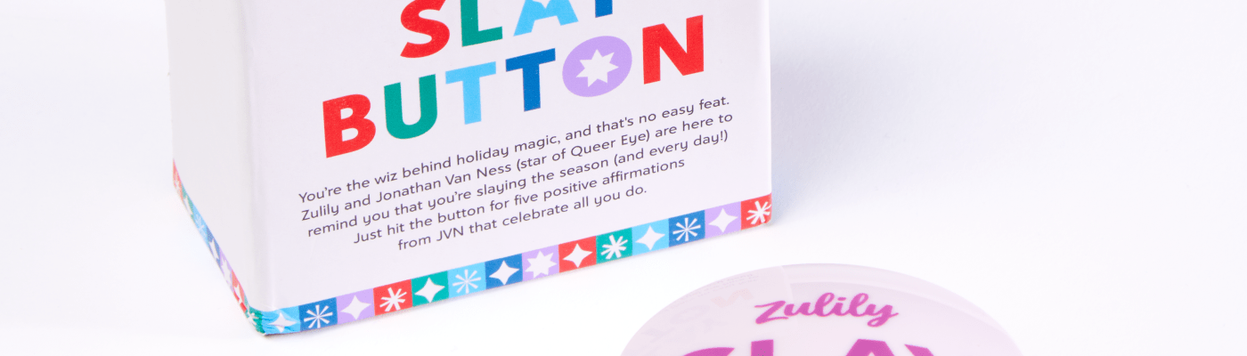 “I’m ecstatic to partner with Zulily to bring the Slay Button to life and help moms find small moments of self-love, which is so important every day, but especially during the holidays, which can be really stressful and exhausting for moms,” said Jonathan Van Ness. “I’m excited to be part of their hype squad and make sure they know they’re slaying the holidays by being their fabulous, lovable selves.”